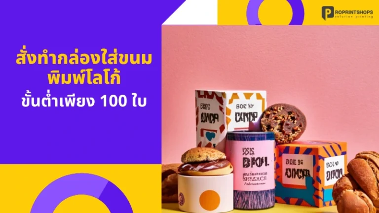 หากต้องการ " สั่งทำกล่องใส่ขนม " พิมพ์โลโก้ ขั้นต่ำ 100 ใบ สามารถอ่านรายละเอียดบริการต่างๆ ได้จากบทความนี้ และสามารถสั่งทำได้ที่โรงพิมพ์ proprintshops